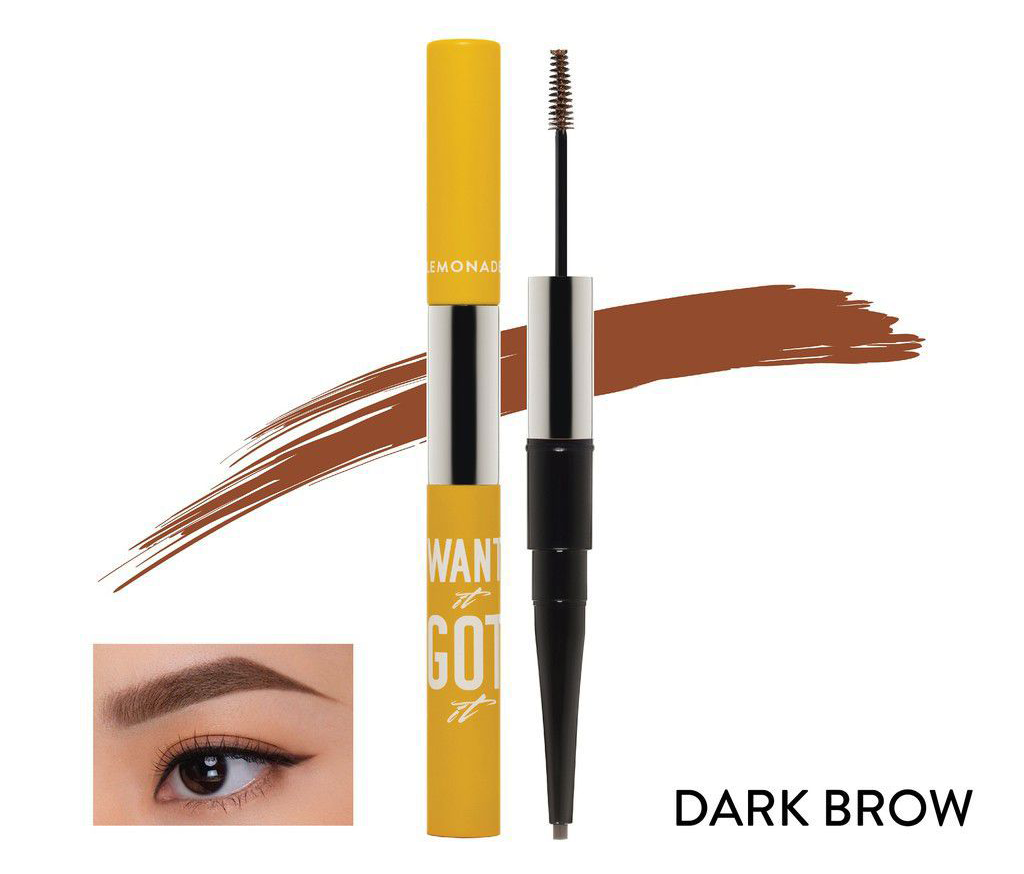 – Lemonade Want It Got It Dual Eyebrow mang lại đôi chân mày hoàn hảo từng nét vẽ và từng sợi lông mày, không lem và không thấm nước, có độ bền màu cao.